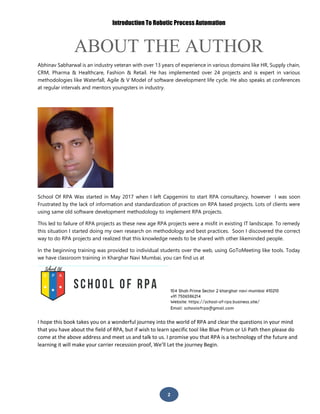This document provides an introduction to robotic process automation (RPA). It defines RPA as configurable software that uses business rules and sequences of actions to automatically complete processes across different applications in the same way a human would, with human assistance for exception management. The document discusses how RPA can help organizations with digital transformation by automating routine tasks and transforming legacy processes. It also outlines the impact of RPA, providing statistics on the growing RPA market size and predictions about how many jobs may be affected by automation technologies like RPA.