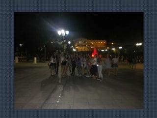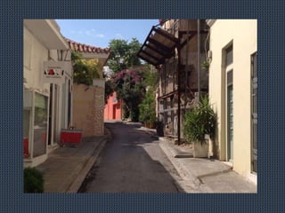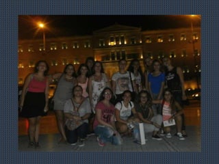 1) Students from Greece and other countries spent their free time from Tuesday to Thursday going around Athens and exploring the city on their own or in addition to activities arranged by their program. 2) Despite being tired from workshops and visits, the students preferred going around Athens to meet new people and see sights in the evenings and at noon. 3) The document outlines various locations and sights that students visited in Athens, including Plaka, Monastiraki, Psiri, Kerameikos, Gazi, the Acropolis, Piraeus, Kastella, Paslimani, Microlimano, the Kalimarmaron and Panathenean stadiums, and "Daphne"