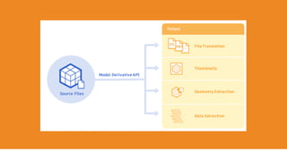 The document discusses the evolution of accessing design data, highlighting the challenges faced in the past with different software and systems. It introduces the Model Derivative API for design data extraction and translation, detailing various endpoints for obtaining model hierarchies, properties, and metadata. It encourages developers to utilize Autodesk's Forge platform for modern design data management and integration.