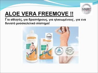 Body gel Freemove– 65% Aloe Vera - 200ml, κωδ.10121 Μ SM – οργανικό θείο, για ελευθερία κινήσεων χωρίς πόνο, για φλεγμονές , για ρευματική αρθρίτιδα / οστεοαρθρίτιδα, αθλητικές κακώσεις Aloe Vera Freemove drink 1000ml, κωδ.10131 - 92% Aloe Vera - Γεύση πορτοκάλι - Περιέχει Βιταμίνη Ε