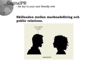 DigitalPR- the keyto your user friendly webVarförsocialamedier?”Facebookkostarföretagenmiljarder””att arbetsgivaren betalar för din tid – inte för ditt resultat som arbetstagare.””att det finns en klar avgränsning mellan det privata livet och arbetslivet.”