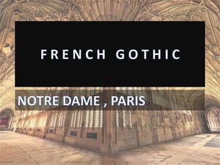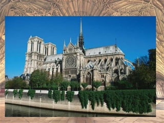 The document provides architectural details about Notre Dame in Paris, including its construction years, dimensions, and notable features like rib vaults and flying buttresses. It also mentions Westminster Abbey in London, highlighting its religious significance and architectural style, particularly baroque. Additionally, the document touches on the characteristics of baroque architecture, emphasizing its dramatic and decorative nature.