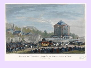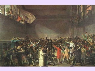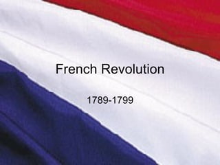 The French Revolution began in 1789 and ended in 1799. It was caused by economic, political, and social factors including a bankrupt government, an absolute monarchy, and unequal rights and taxation that disadvantaged the third estate. The revolution removed the monarchy and established a republic, but this period was marked by instability and violence including the Reign of Terror led by Robespierre that resulted in thousands of deaths by guillotine. The revolution dramatically transformed French government and society and had widespread impact on other European countries.