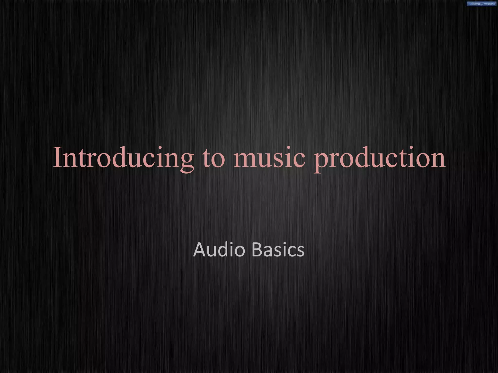 This document provides an introduction to audio basics, with a focus on frequency. It defines frequency as the number of occurrences of a repeating event per unit time, with the standard unit being Hertz (Hz). It notes that the human range of hearing is generally 20Hz to 20,000Hz. It discusses how wavelength changes with frequency, from 17 meters at 20Hz to 1.7 centimeters at 20kHz. It also defines simple and complex sounds, and explains how music is divided into 10 octaves based on doubling and halving of frequencies. Key points about different octave ranges and their audio qualities are summarized.