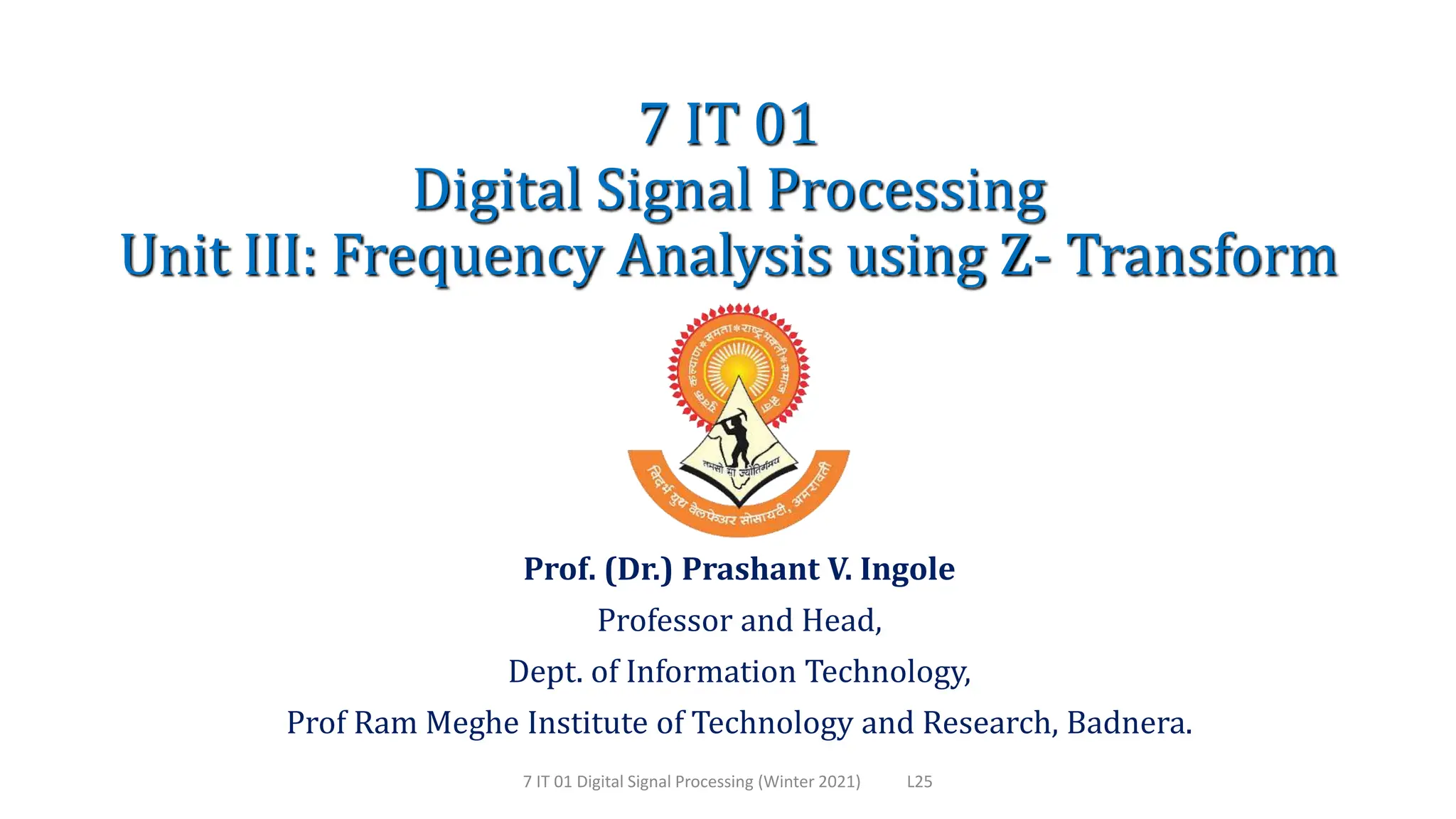 This document provides an overview of frequency analysis using the Z-transform. It defines the Z-transform, discusses its properties and relationship to the Fourier transform. Examples are provided to demonstrate calculating the Z-transform of different signals and determining the region of convergence. Key topics covered include the definition of the Z-transform, its region of convergence, properties, inverse Z-transform, and analyzing discrete time linear time-invariant systems using the Z-transform.