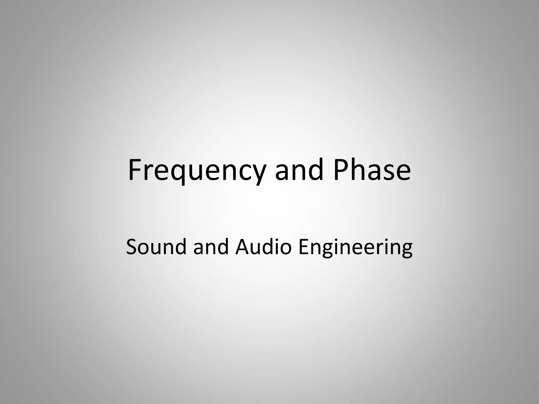 The document discusses frequency and phase in sound and audio engineering. It defines frequency as the pitch of a sound, measured in Hertz (Hz). The range of human hearing is between 20 Hz to 20 kHz, with lows between 20-250 Hz, mids between 250 Hz to 6 kHz, and highs between 5 kHz to 20 kHz. Frequency response refers to the range in which a signal can be produced uniformly and without distortion by a system. Phase is defined as the relative delay between two sound waves of the same frequency, and being in or out of phase can increase or decrease the amplitude and loudness of a wave.