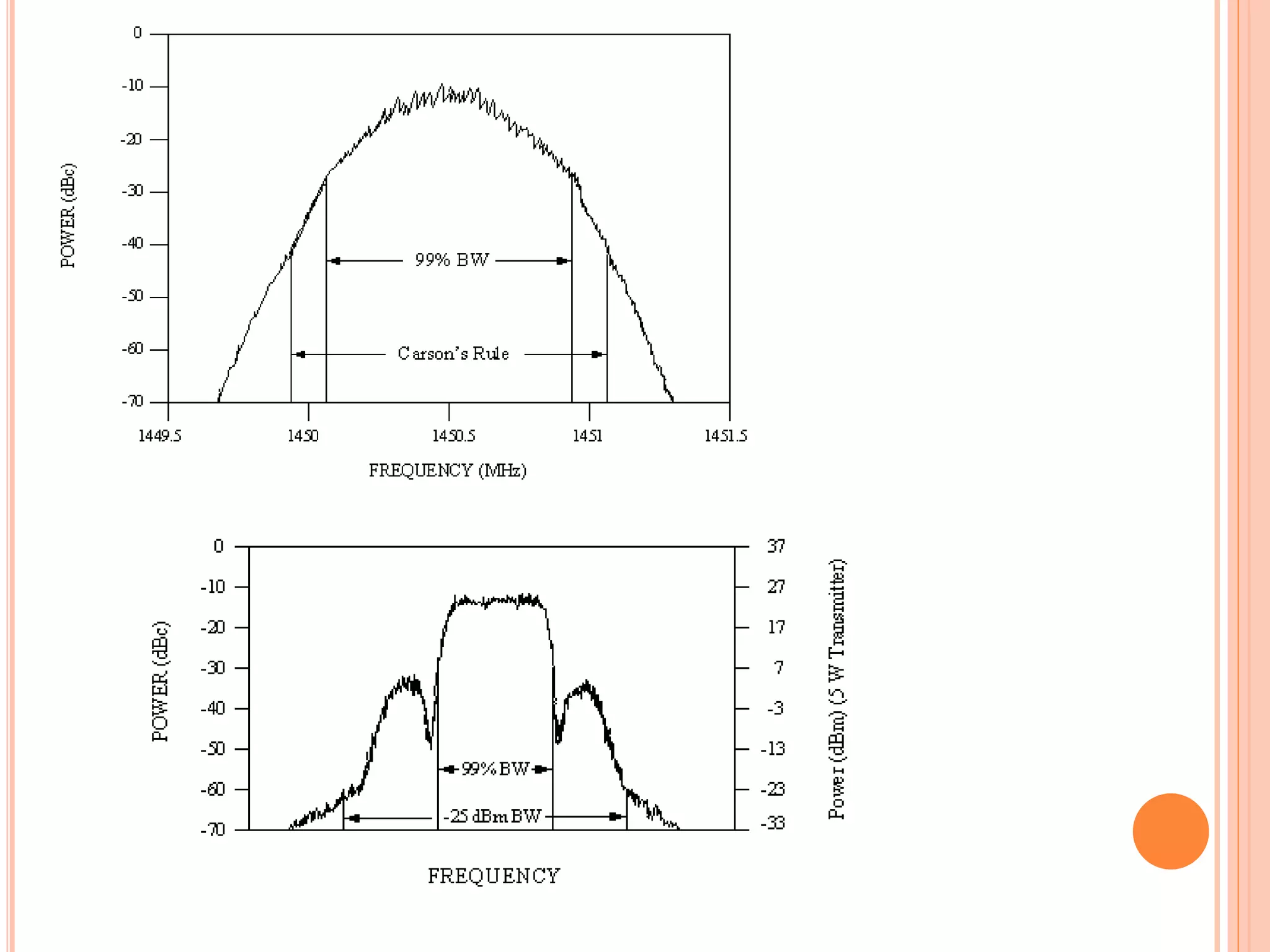 This document discusses Carson's bandwidth rule and methods for generating frequency modulation (FM). Carson's rule defines the bandwidth requirement of communication system components based on the peak frequency deviation and highest modulating frequency. There are two main methods for generating FM: direct and indirect. The indirect, or Armstrong, method uses an integrator followed by a phase modulator rather than a voltage controlled oscillator, allowing for more stable oscillations than the direct method. Phase modulation is also discussed as an alternative technique where the carrier phase rather than frequency varies with the information signal.