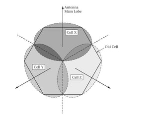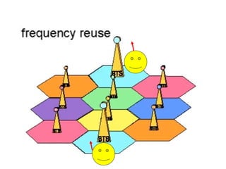 The key characteristic of a cellular network is the ability to reuse frequencies to increase both coverage and capacity. Cellular networks divide geographic areas into smaller cells and assign different frequency groups to neighboring cells to minimize interference and allow for frequency reuse. This allows the same frequencies to be reused in different cells separated by a sufficient distance.