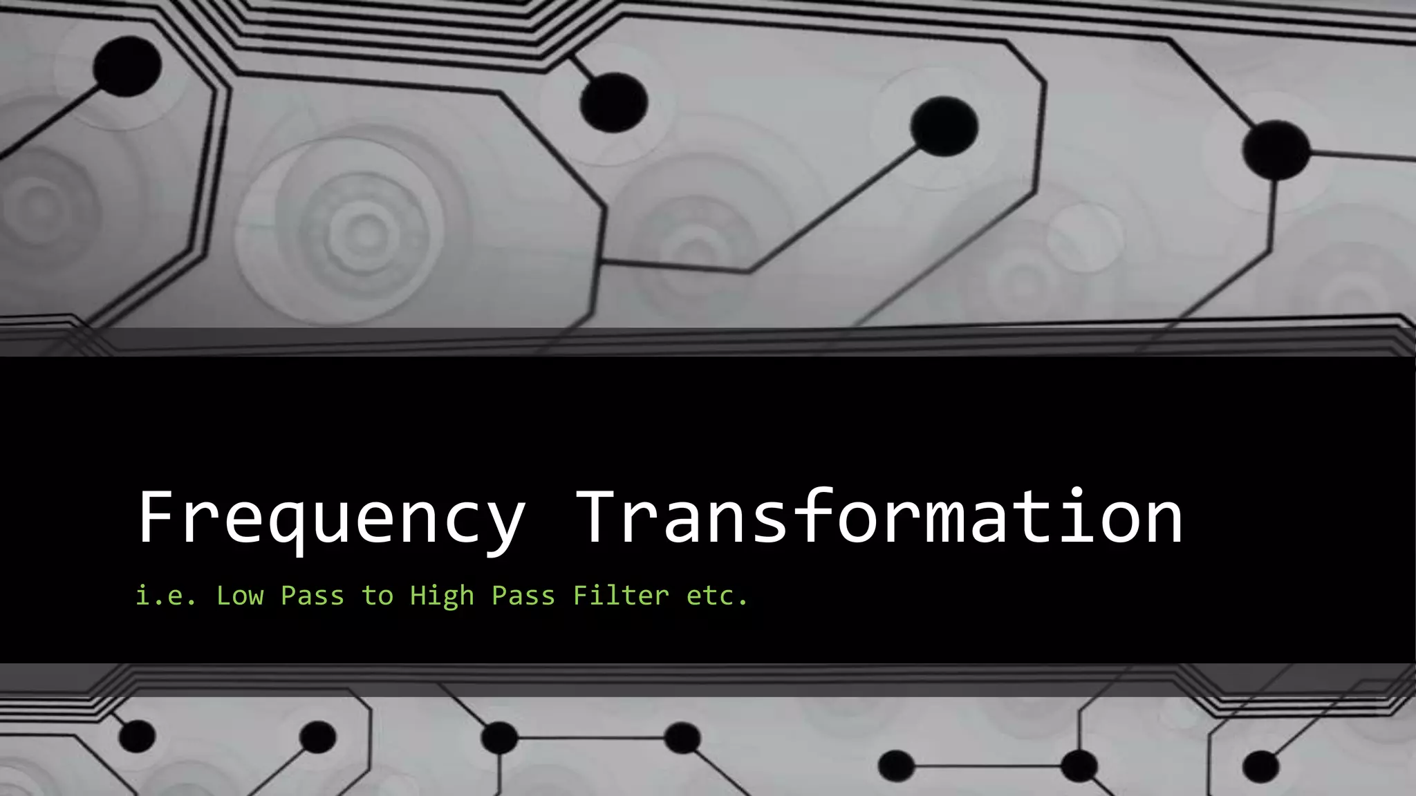 This document discusses frequency transformations that can be used to design bandpass, bandstop, and high-pass filters based on a low-pass filter design. It explains that filters can be transformed from low-pass to other types by applying a suitable frequency transformation. Common transformations include applying substitutions to move the cutoff frequency or replace the frequency variable to transform the response from low-pass to high-pass. The transformations allow filters to be designed by first specifying a normalized low-pass filter and then transforming it.