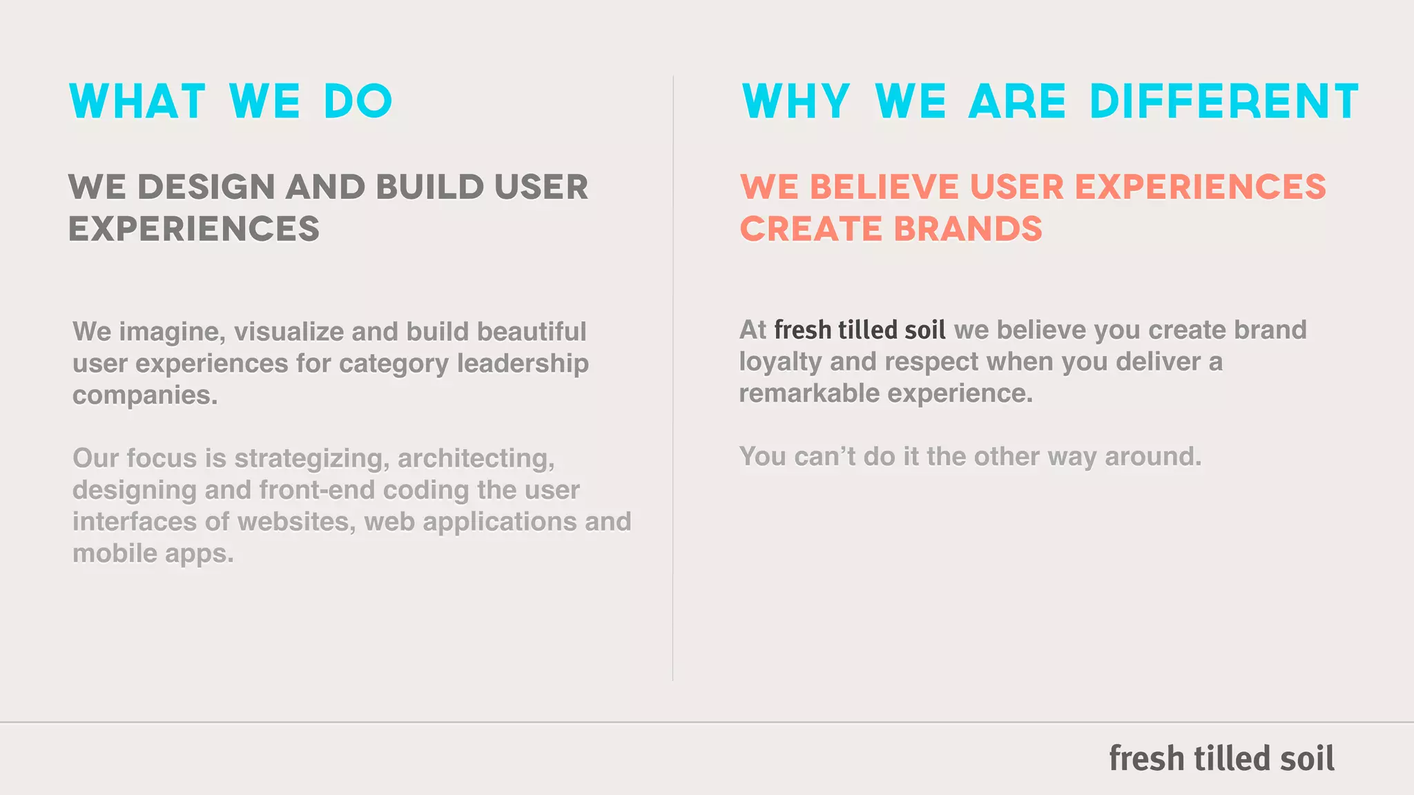 This document summarizes the capabilities of a design firm that focuses on creating user experiences to build brand loyalty for companies. The firm believes user experiences are what create brands, not the other way around. They strategize, design, and code user interfaces for websites, web applications, and mobile apps using agile development methods in iterative cycles to ensure project success. The firm has designed over 470 digital projects for clients in 9 countries since 2006.