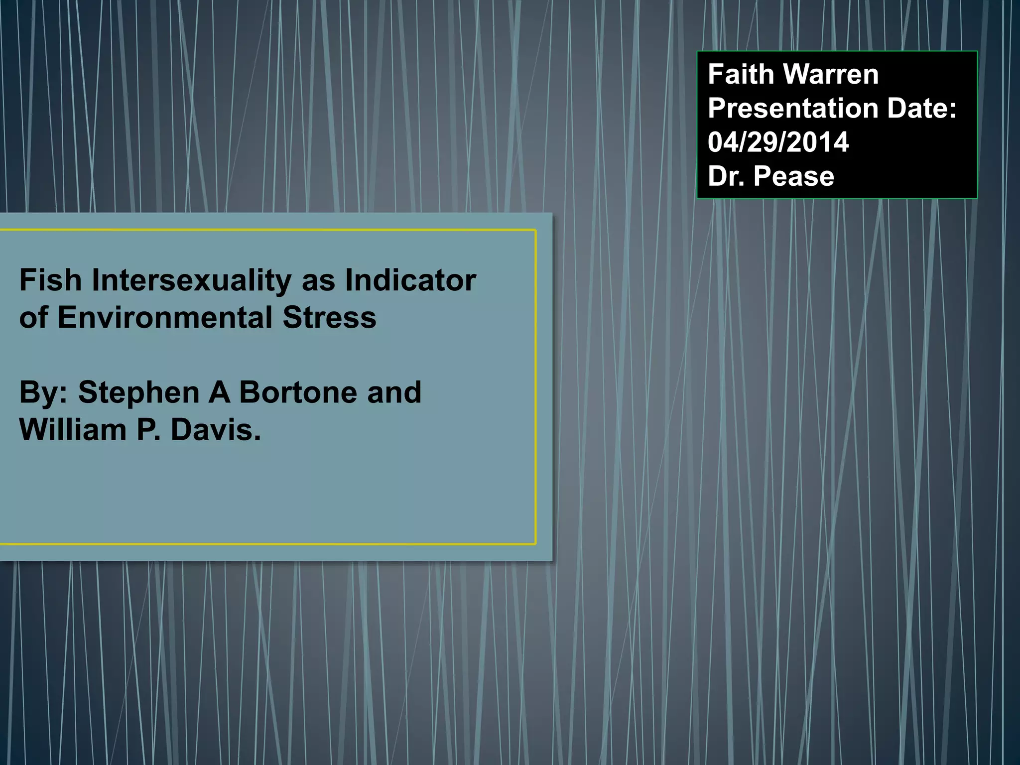 Fish Intersexuality as Indicator of Environmental Stress summarizes a presentation about using intersexuality in fish as a bioindicator for detecting endocrine disrupting chemicals in bodies of water. The presentation describes research on mosquitofish and least killifish exposed to kraft-mill effluent that showed masculinized features in female fish, including gonopodial elongation of the anal fin in mosquitofish and increased segmentation at the fin ray tips in least killifish. The study demonstrates that examining reproductive systems in fish can help identify substances interfering with hormone-mediated processes and that poeciliid fish make useful subjects for detecting endocrine disruptors.