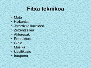 Fitxa teknikoa MotaHizkuntza Jatorrizko lurraldea Zuzentzailea Aktoresak Produktore Gioia Musika klasifikazio Iraupena