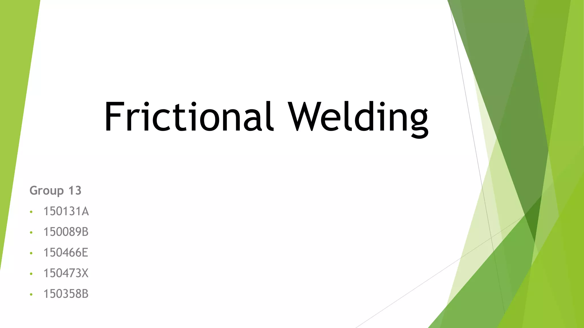 Frictional welding is a solid-state welding process that uses relative motion and high force between two contacting workpieces to generate heat through friction and form a joint. There are different types of frictional welding processes defined by the motion used - linear, rotary, stir, radial, and orbital friction welding. Frictional welding produces joints with low surface impurities and narrow heat-affected zones. It can join similar and dissimilar metals for applications in automotive, aerospace, consumer products, medical, and other industries.