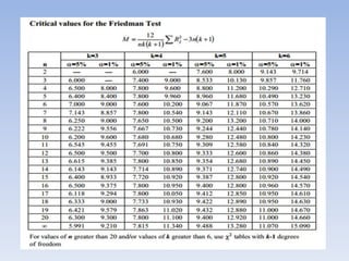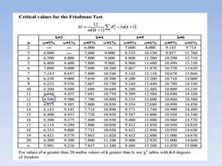 The document provides information about Friedman's test, a non-parametric statistical method used to test for differences between groups when the dependent variable is ordinal. It discusses the history of Friedman's test, its assumptions, how to conduct it in SPSS, and provides examples to demonstrate its use.