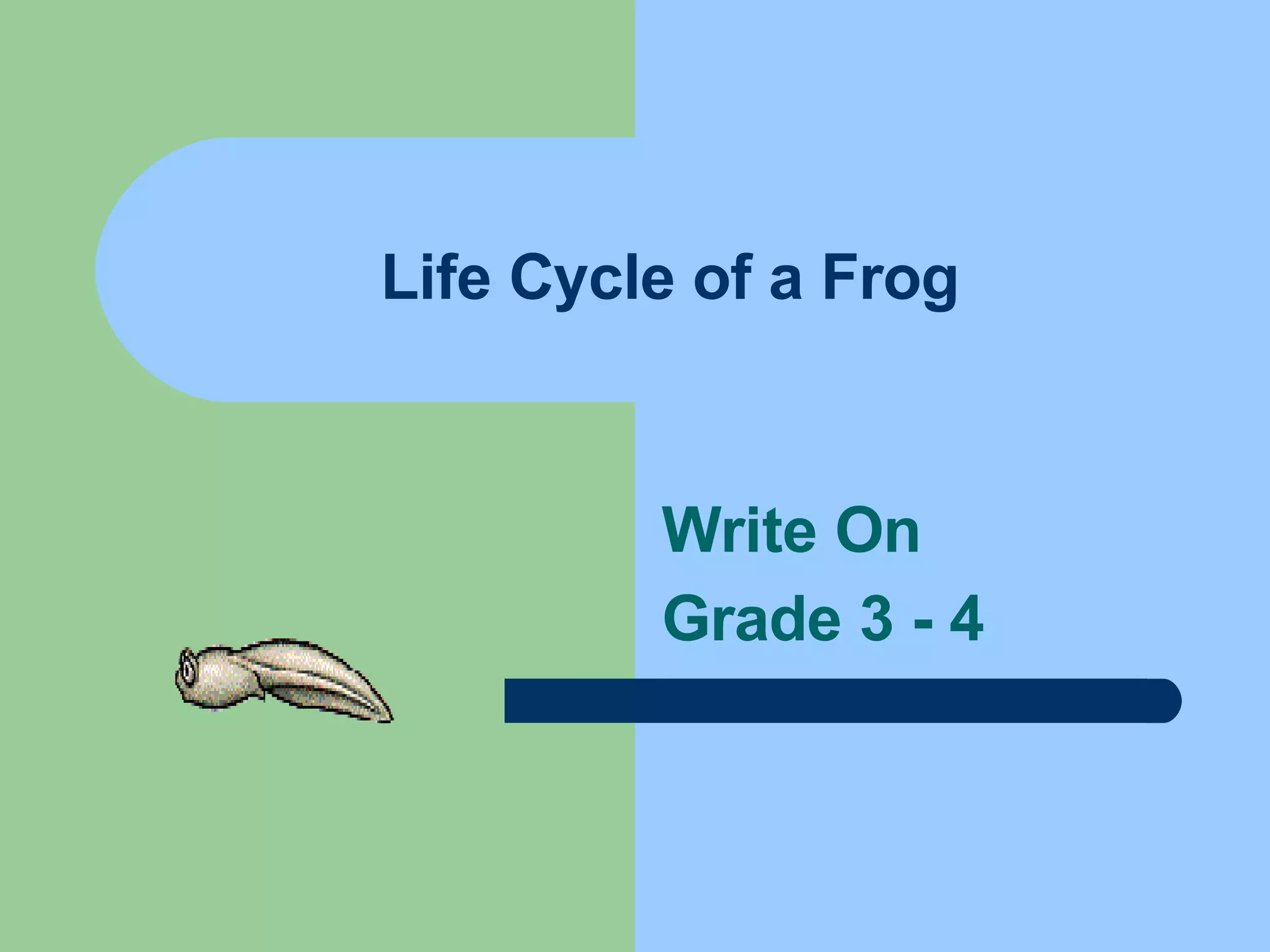 The document summarizes the life cycle of a frog in 4 stages: