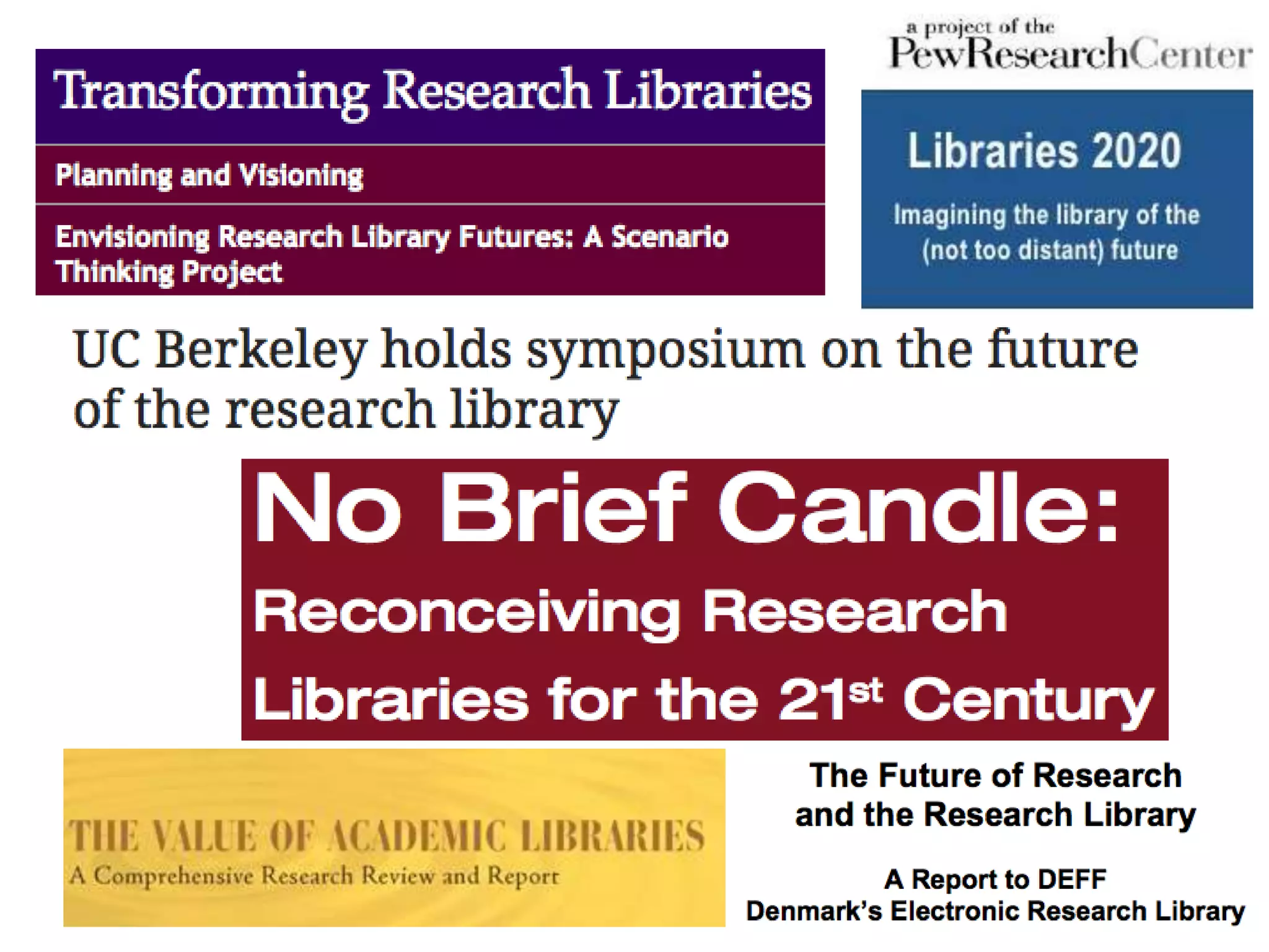 The document discusses the evolution of research libraries, highlighting the transition from traditional physical collections to digital content and the importance of adapting to new scholarly access methods. It emphasizes the necessity for libraries to provide resources that support current students and faculty while preserving the cultural record. The document also contains speculative views on the future of libraries, incorporating elements of technology and changing user experiences.