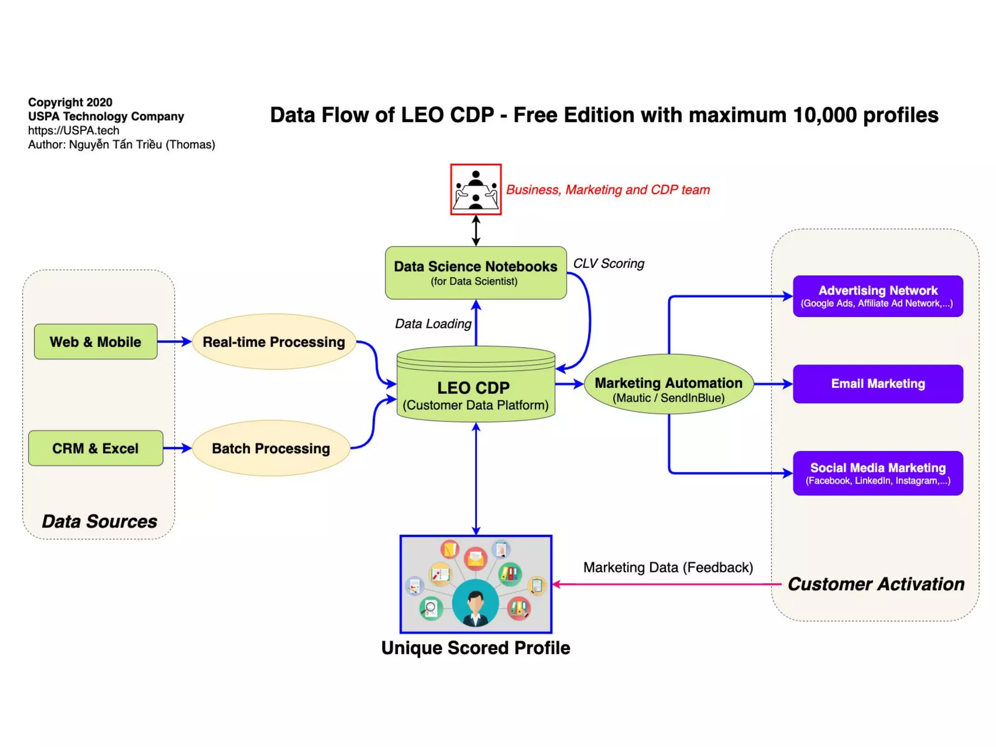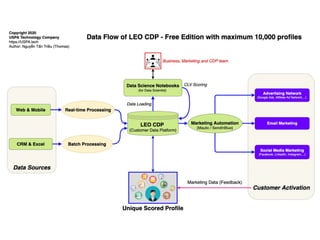 This document discusses Dataism and how businesses can use the LEO Customer Data Platform (CDP) in a Dataist mindset. It begins by asking why Dataism is important for humans, business, and society. It then explains how LEO CDP can unify customer data from different sources to create a single customer profile with scores and predictions. This allows businesses to classify, segment, and activate customers more effectively. The document recommends applying Dataism principles like observing customer data without coding or SQL to gain insights for a book retail business. It concludes by thanking the audience and providing contact information.