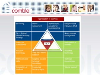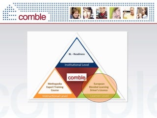 The document discusses using information and communication technologies (ICT) to support active and collaborative learning. It notes that interactive e-learning and group work can lead to deeper and more reflective learning. It also discusses the Methopedia wiki, which provides activities and approaches for trainers and has been translated into four languages. Over 2,000 people visit the site each month. The document promotes blended learning patterns and solutions and provides support resources for trainers in designing learning experiences that combine online and face-to-face elements.