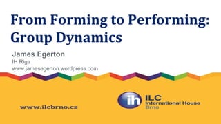 This document summarizes a presentation about group dynamics for English teachers. It discusses forming groups, leadership styles, stages of group development, and creating a cooperative learning environment. Optimal leadership involves democratic and laissez-faire approaches, allowing students to share ideas and take responsibility for their learning. The presentation provides examples of mastery and performance goals for language learning and encourages setting valued goals to motivate students.
