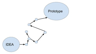 The document outlines John Sechrest's approaches to transforming ideas into minimum viable products (MVPs) through a structured method involving time boxing, sprints, and team collaboration. It lists various tools and platforms that can assist in this process, such as Unbounce, WordPress, Firebase, and GitHub. The emphasis is on rapid prototyping and agile development practices, aiming for quick results within limited timeframes.