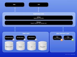 The document summarizes the development history of VuFind, an open source library resource discovery portal, from its inception at Villanova University in 2006 to its release as open source software in 2007. It describes how the idea was to create a single interface for searching the library catalog and databases, and how the developers aimed to make it compatible with different library systems and easy to install. It also discusses the benefits and challenges of making it an open source project.