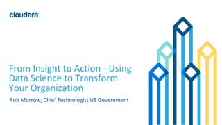 The document discusses the modernization of organizations through data science and emphasizes Cloudera's tools for managing and processing data across various platforms. It highlights the importance of bridging skill gaps in government data science and outlines use cases for decision science and data products. Additionally, it details the role of data ingestion, processing, and machine learning in enhancing data utilization and driving business value.