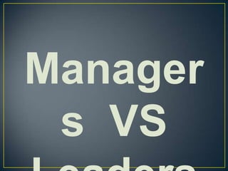 Managers focus on tasks and maintaining the status quo, while leaders have a calling to guide others based on deeply held convictions. To become a true leader, one must discover their core beliefs and build a collaborative culture around a shared vision for the future. Leaders motivate and develop their team members, continually improving their own skills in areas like communication, finances, time management, and ethics. The key is to work every day at becoming better while having courage in your convictions.
