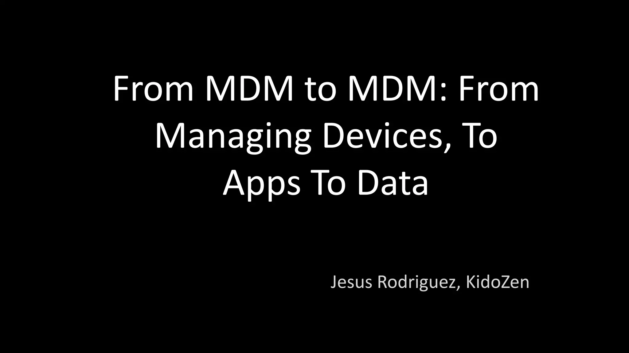 Mobile operations management has evolved from managing devices to managing apps and data. Managing mobile business data is now the focus, as it allows real-time access to line-of-business systems via mobile apps. This involves applying context-aware and mobile-first policies to control access to data sources based on factors like geo-location, device, network, and app. An enterprise mobile middleware is needed to effectively manage business data across multiple mobile environments and contexts.