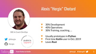 The document discusses rewriting scripts originally written in Python into Kotlin. It compares features between the languages for tasks like parsing file formats, directories browsing, and bootstrapping. While Python is easier to get started, Kotlin offers benefits like enum classes, pattern matching, and extension functions. Rewriting in Kotlin produced a cleaner, more maintainable implementation.
