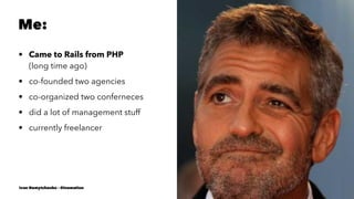 Ivan Nemytchenko discusses transitioning from a Rails application to a modular architecture, emphasizing the limitations of the Rails approach and the importance of applying design principles. He outlines a case study involving the decoupling of a monolithic app into separate frontend and backend components using AngularJS for the frontend and Rails for the API. The document also highlights the implementation of features using service objects and presents strategies for managing data and functionality through structured coding practices.