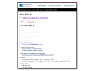 The document discusses the history of libraries capturing data from handwritten catalog cards in the 19th century to the development of machine-readable cataloging formats like MARC. It then describes how libraries are now publishing data as linked open data on the web using standards like Schema.org and RDFa, with over 270 million resources available. The talk encourages libraries to stop just copying data and instead start linking to other data sources to fully leverage the potential of the semantic web.