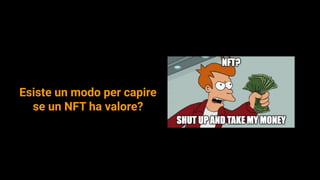 Il documento discute l'emissione e la valutazione degli NFT, evidenziando l'importanza dei contratti smart nella gestione e nell'autenticazione delle transazioni. Viene presentata una panoramica di vari standard degli NFT, come ERC20, ERC721 ed EIP1155, e delle loro funzioni. Infine, si menziona l'opzione per gli artisti di ricevere royalty sulle vendite future dei loro NFT.