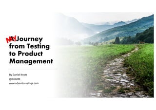 The document shares a personal journey from software testing to product management by Daniel Knott, encouraging others to explore new career paths outside their comfort zones. It highlights the valuable skills that software testers possess, such as communication, technical knowledge, and user empathy, which make them well-suited for roles like product management. Additionally, it outlines potential career progression options for software testers seeking new opportunities.