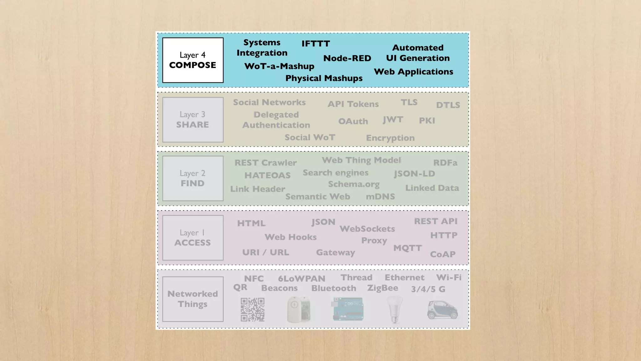 This document provides an overview and introduction to the Web of Things (WoT). It begins with definitions of key IoT concepts like embedded devices, sensors and actuators. It then covers networking protocols for IoT including LPWAN. The main part of the document focuses on the WoT, including its key aspects of the Access, Find, Share and Compose layers. It provides examples of using APIs and semantic models to represent IoT devices on the web. Labs are suggested to experiment with programming IoT devices and creating mashups using tools like Node-RED and IFTTT. Overall the document serves as a high-level tutorial introducing important WoT concepts and technologies.