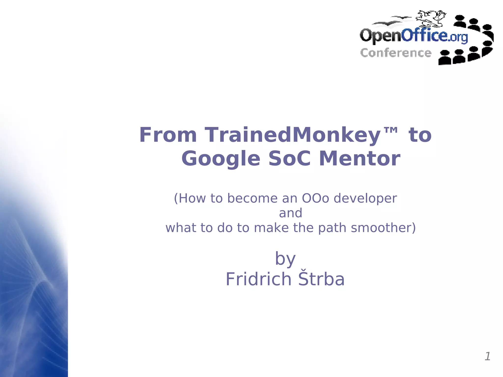 The document discusses the author's path from working on smaller open source projects like libwpd to becoming a mentor for Google Summer of Code with OpenOffice.org. Some challenges of contributing to OpenOffice.org included its complex codebase and lengthy build times. The author advocates improving modularity, providing coaching for new developers, and streamlining contribution processes.