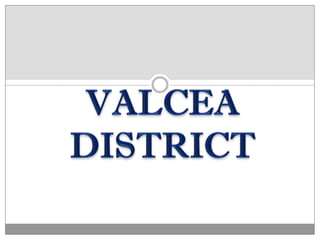 The document describes several museums, monasteries, and landmarks located in and around Valcea County, Romania. Key locations mentioned include the Museum Maldaresti near Horezu, the spectacular Bistritei keys 1.5 km long, the iconic Horezu Monastery built in the Brancovenesc style between 1693-1697, the Govora Monastery situated at the foot of a hill, and the Costesti Art Museum housed in a building donated in 1970.