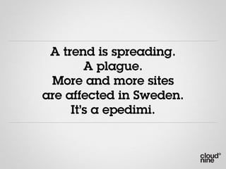 This document contains a collection of short phrases and website URLs. It discusses the spread of an epidemic in Sweden affecting many sites. It also mentions opportunities to cure diseases and discusses user experience processes involving multi-disciplinary teams and stages of analysis, strategy, concept, design, and testing.