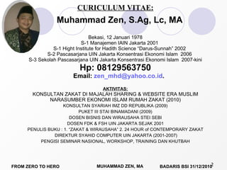 Dokumen ini adalah presentasi oleh Muhammad Zen mengenai kewirausahaan dan tantangan yang dihadapi oleh pengusaha di Indonesia, termasuk masalah korupsi dan pembajakan perangkat lunak. Terdapat juga inspirasi dari tokoh sukses seperti Bill Gates, Mark Zuckerberg, dan Bob Sadino yang menunjukkan pentingnya kreativitas, keberanian, dan kerja keras untuk mencapai kesuksesan. Penekanan pada nilai-nilai Islam dalam berbisnis serta pengalaman pribadi Muhammad Zen sebagai konsultan dan pengajar juga disoroti.