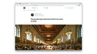 The document discusses transitioning from backend development to modern front-end development, focusing on JavaScript frameworks like Angular, React, and Vue. It covers essential topics such as build tools, performance optimization, and the significance of progressive web applications (PWAs). Additionally, it emphasizes the importance of staying updated with current technologies and offers resources for learning and development.
