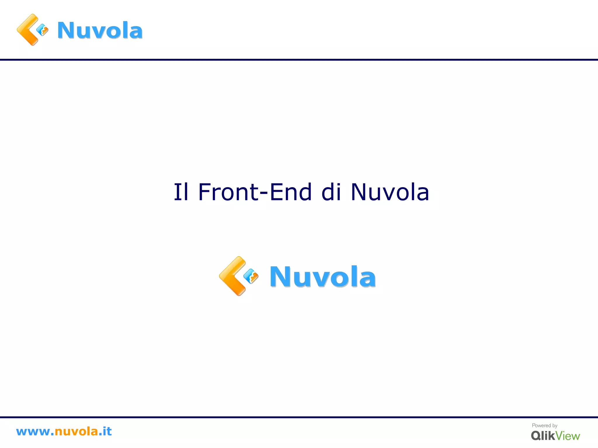 Il front-end di Nuvola offre un'interfaccia intuitiva e accesso diretto a report e analisi, migliorando l'esperienza dell'utente finale. Gli utenti possono personalizzare le loro visualizzazioni e report, facilitando l'analisi dei dati in modo rapido e semplice. La funzionalità di stampa avanzata permette di esportare facilmente i dati in formati XLS e PDF.