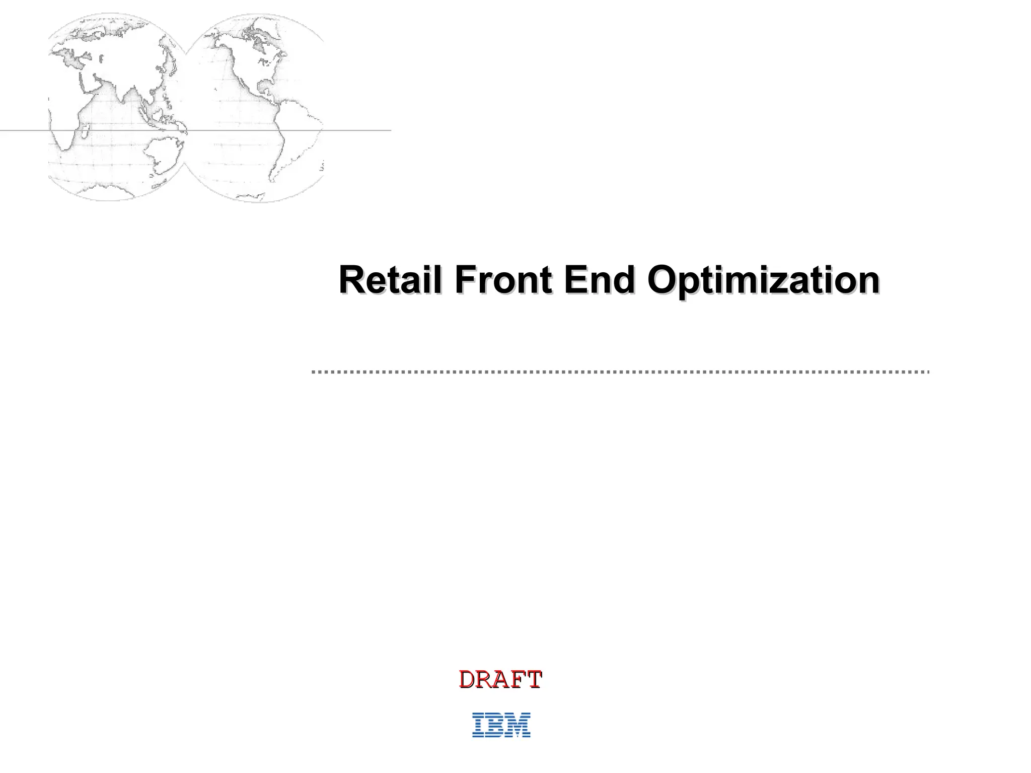 The document discusses IBM's retail front end optimization offering, aimed at addressing challenges retailers face such as high employee turnover, competition, and operational costs. It highlights the importance of efficient front end operations to improve staff productivity, customer satisfaction, and overall cost management. The strategy involves assessing store performance, implementing best practices, and utilizing data-driven insights to enhance front end processes and store layouts.
