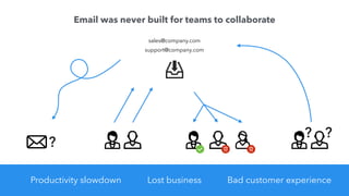 - Email was originally designed for individual use, not team collaboration, so the company built the first shared email client to enable features like canned responses, automated rules, reminders, and analytics.
