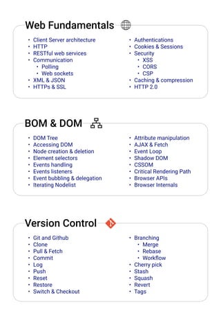 The document is a comprehensive checklist and roadmap for frontend development, covering essential topics in HTML, CSS, JavaScript, React, web fundamentals, and best practices. It includes advanced topics such as performance, security, and version control, as well as recommended tools and technologies. The structure is designed to guide learners through various stages of frontend development proficiency, from beginner to intermediate levels.