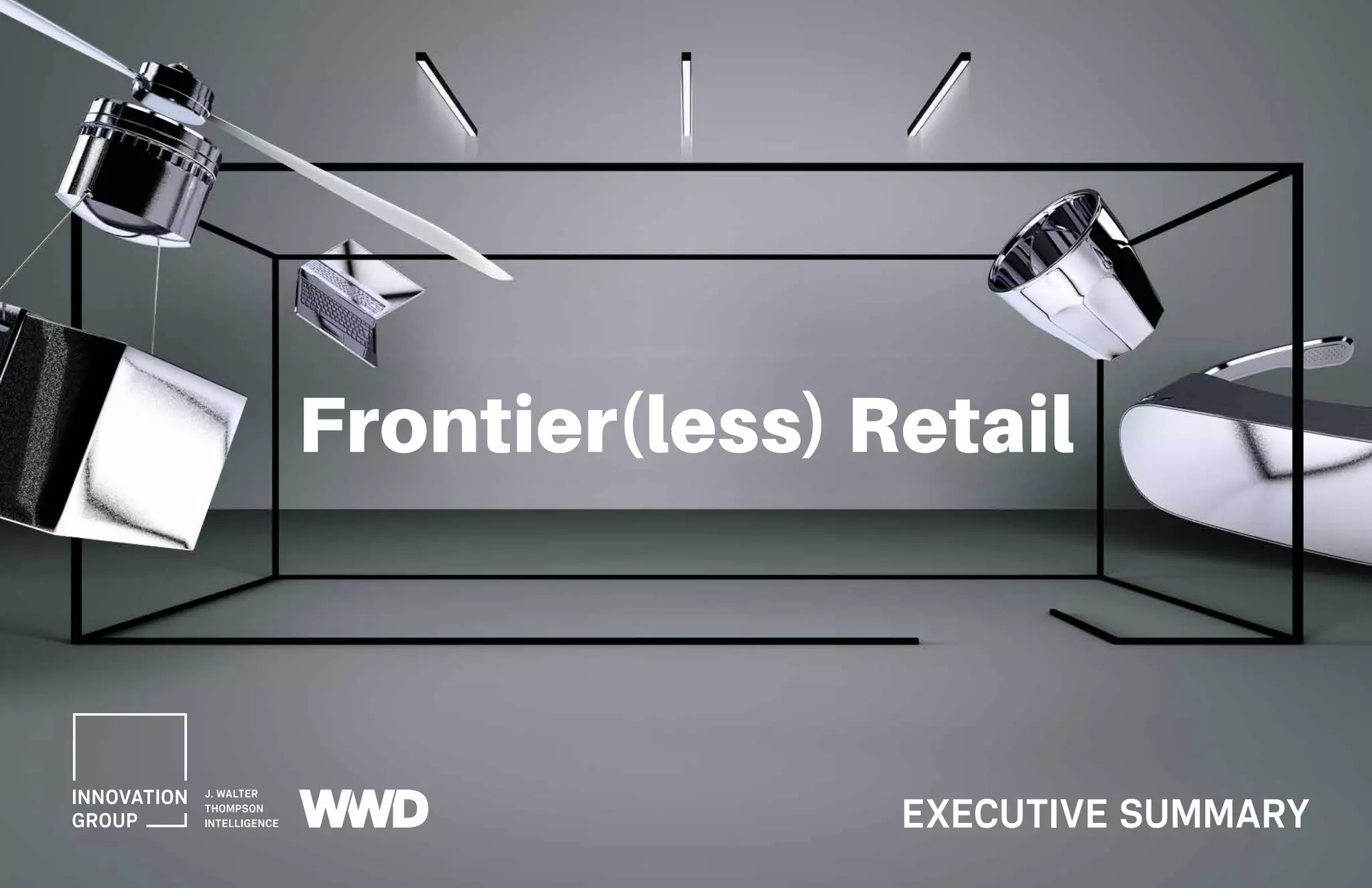 The document presents the 'frontier(less) retail' report, which explores the evolving landscape of retail, highlighting the blurring lines between physical and digital commerce, driven by technological advancements such as AI and immersive experiences. It emphasizes the need for retailers to adapt quickly to changing consumer behaviors where ownership is replaced by experiences and personalized interactions. The collaboration with Women's Wear Daily signals a commitment to understanding and shaping future retail trends in a world of globalized commerce.