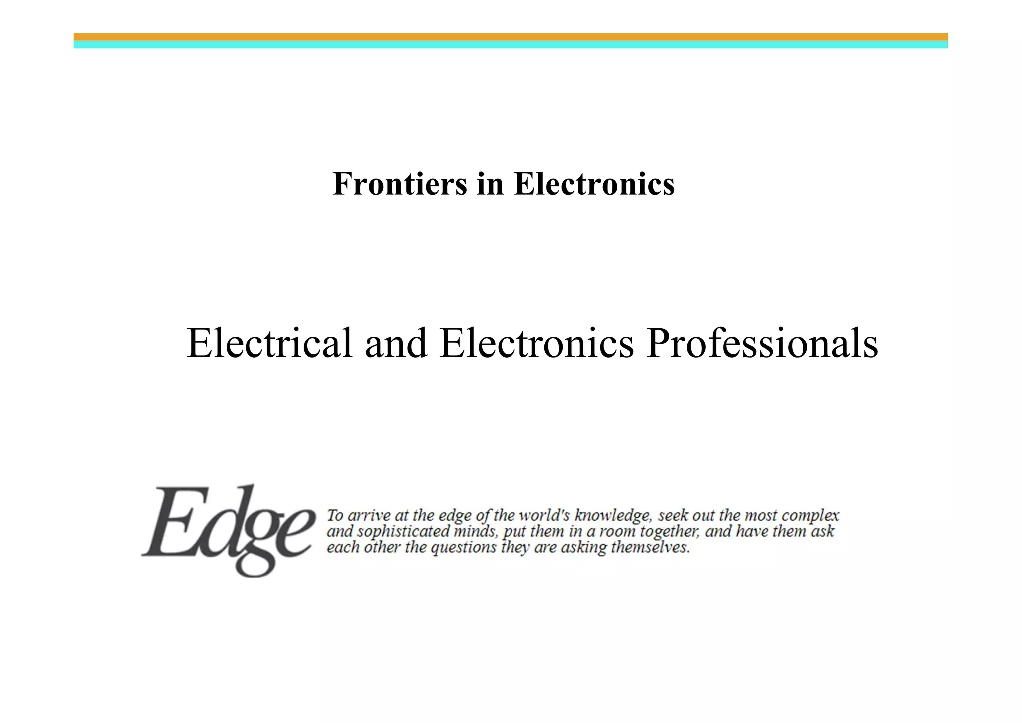 Frontiers in electronics To arrive at the edge of the world's knowledge, seek out the most complex and sophisticated minds, put them in a room together, and have them ask each other the questions they are asking themselves.