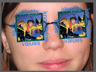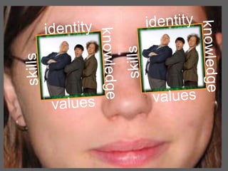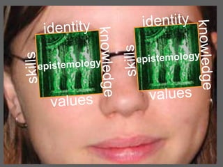 The document discusses several topics related to education including communities of practice, epistemic frames, reflection-in-action, ways of knowing and doing, and epistemic network analysis. It also includes examples of codes used in epistemic network analysis and diagrams showing connections between codes across utterances and stanzas in a chat discourse.