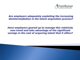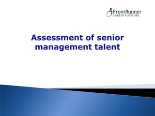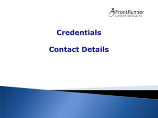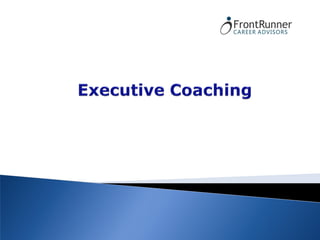 The document outlines various talent acquisition and executive coaching services offered by FrontRunner Career Advisors including: