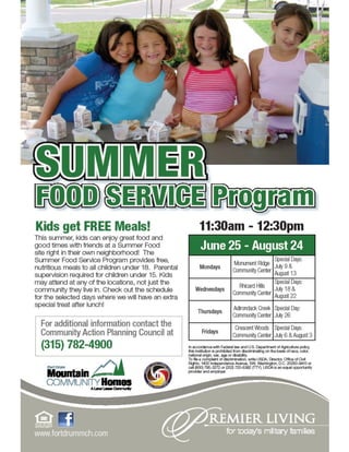 This document is a newsletter from HHC, 10th Combat Aviation Brigade announcing upcoming events and providing information to soldiers and families. It welcomes 1SG Grady as the new First Sergeant while bidding farewell to 1SG Smith. It announces an organizational day at Old McDonald's Farm on July 6th and provides details. It also lists local fairs, farmers markets, fishing spots, and other recreational activities in the area. Clinic coverage plans and contact information for the unit is provided.