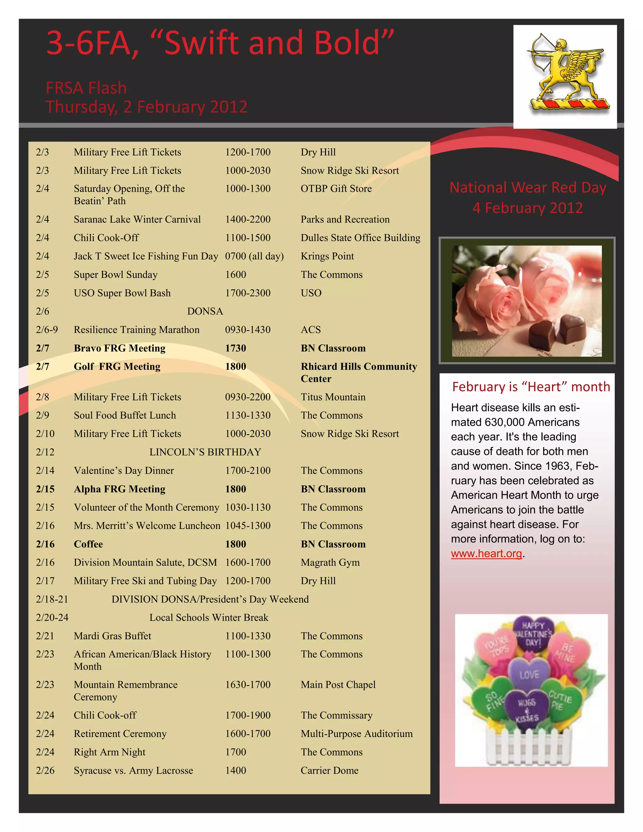 - Information about February being American Heart Month and National Donor Day on February 14th