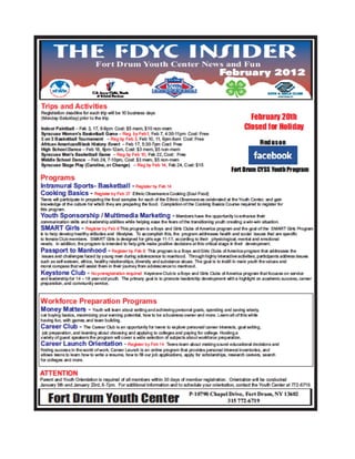 The document provides information about upcoming community events in and around Fort Drum for the month of February 2012, including: